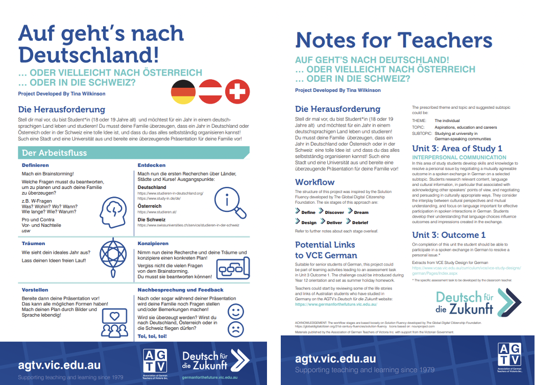 Additional materials and a dedicated page for Literacy and German can be found on the AGTV member website.